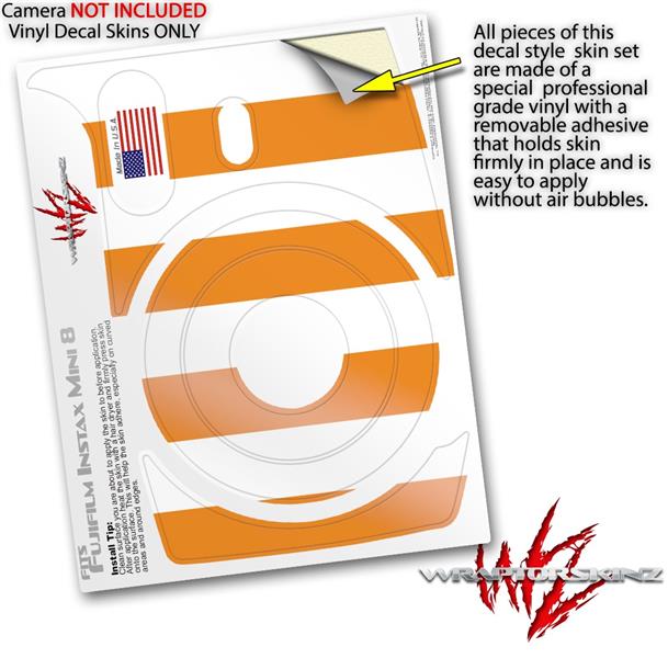WraptorSkinz Skin Decal Wrap compatible with Fujifilm Mini 8 Camera Psycho Stripes Orange and White (CAMERA NOT INCLUDED)