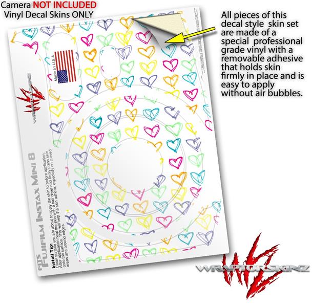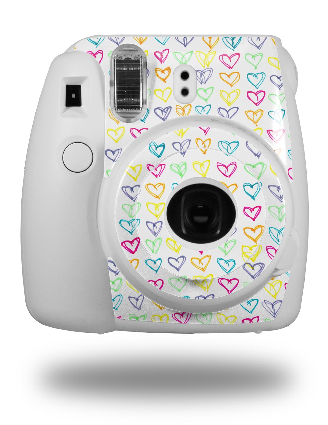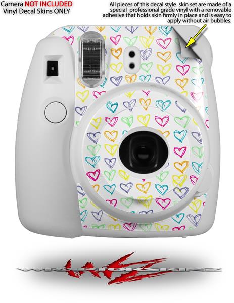 WraptorSkinz Skin Decal Wrap compatible with Fujifilm Mini 8 Camera Kearas Hearts White (CAMERA NOT INCLUDED)