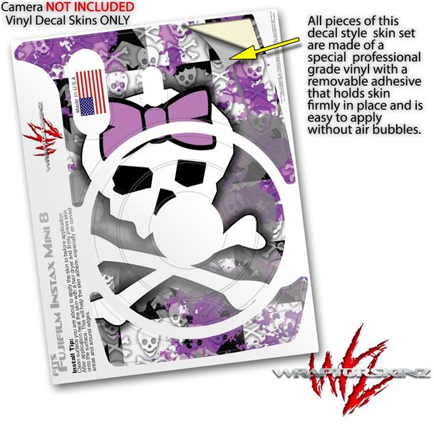 WraptorSkinz Skin Decal Wrap compatible with Fujifilm Mini 8 Camera Princess Skull Purple (CAMERA NOT INCLUDED)