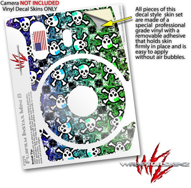 WraptorSkinz Skin Decal Wrap compatible with Fujifilm Mini 8 Camera Splatter Girly Skull Rainbow (CAMERA NOT INCLUDED)