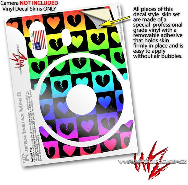 WraptorSkinz Skin Decal Wrap compatible with Fujifilm Mini 8 Camera Love Heart Checkers Rainbow (CAMERA NOT INCLUDED)