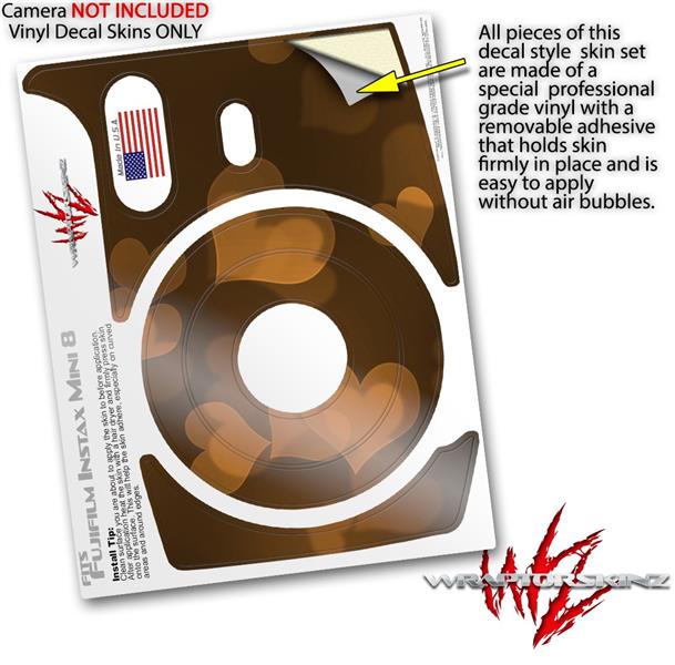 WraptorSkinz Skin Decal Wrap compatible with Fujifilm Mini 8 Camera Bokeh Hearts Orange (CAMERA NOT INCLUDED)