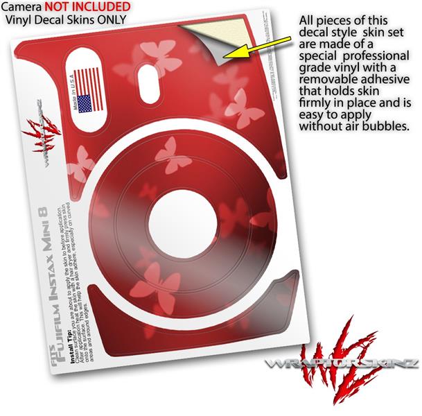 WraptorSkinz Skin Decal Wrap compatible with Fujifilm Mini 8 Camera Bokeh Butterflies Red (CAMERA NOT INCLUDED)