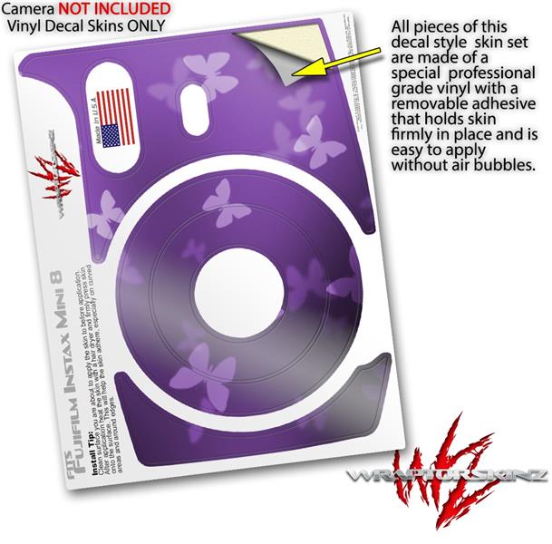 WraptorSkinz Skin Decal Wrap compatible with Fujifilm Mini 8 Camera Bokeh Butterflies Purple (CAMERA NOT INCLUDED)