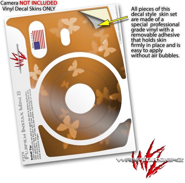 WraptorSkinz Skin Decal Wrap compatible with Fujifilm Mini 8 Camera Bokeh Butterflies Orange (CAMERA NOT INCLUDED)