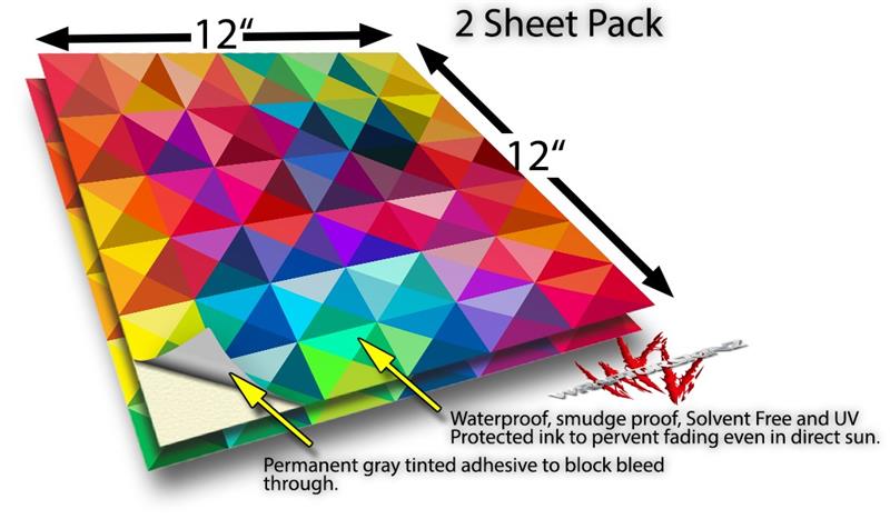 WraptoSkinz™ skin vinyl craft sheets are printed using superb photo quality designs and vibrant colors printed with special UV Protected fade resistant inks that last even in direct sun for years. Unlike other brands our inks are NOT solvent based. WraptorSkinz are a manufactured from professional grade 3mill vinyl. These sheets are waterproof, the designs will not run or smear even if submerged in water.