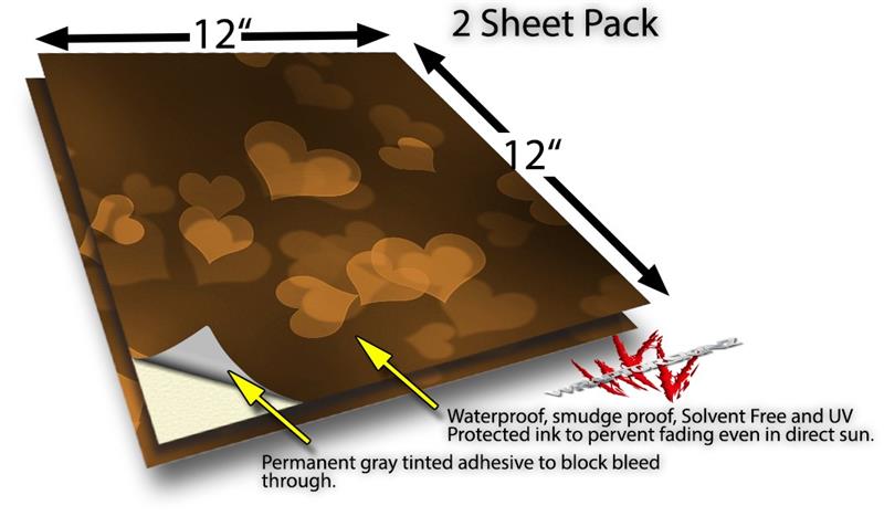WraptoSkinz™ skin vinyl craft sheets are printed using superb photo quality designs and vibrant colors printed with special UV Protected fade resistant inks that last even in direct sun for years. Unlike other brands our inks are NOT solvent based. WraptorSkinz are a manufactured from professional grade 3mill vinyl. These sheets are waterproof, the designs will not run or smear even if submerged in water.
