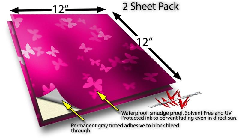 WraptoSkinz™ skin vinyl craft sheets are printed using superb photo quality designs and vibrant colors printed with special UV Protected fade resistant inks that last even in direct sun for years. Unlike other brands our inks are NOT solvent based. WraptorSkinz are a manufactured from professional grade 3mill vinyl. These sheets are waterproof, the designs will not run or smear even if submerged in water.