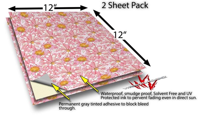 WraptoSkinz™ skin vinyl craft sheets are printed using superb photo quality designs and vibrant colors printed with special UV Protected fade resistant inks that last even in direct sun for years. Unlike other brands our inks are NOT solvent based. WraptorSkinz are a manufactured from professional grade 3mill vinyl. These sheets are waterproof, the designs will not run or smear even if submerged in water.