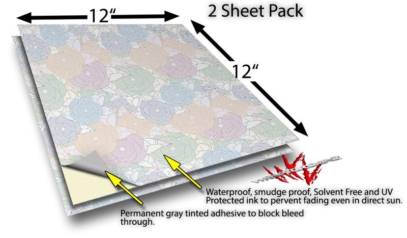 WraptoSkinz™ skin vinyl craft sheets are printed using superb photo quality designs and vibrant colors printed with special UV Protected fade resistant inks that last even in direct sun for years. Unlike other brands our inks are NOT solvent based. WraptorSkinz are a manufactured from professional grade 3mill vinyl. These sheets are waterproof, the designs will not run or smear even if submerged in water.