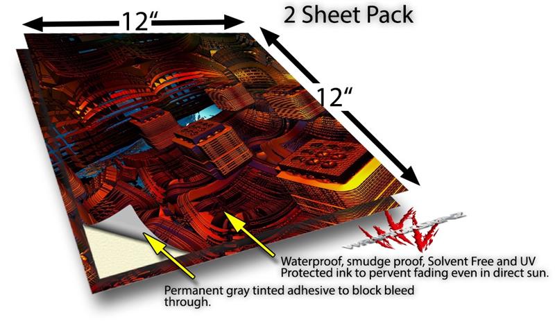 WraptoSkinz™ skin vinyl craft sheets are printed using superb photo quality designs and vibrant colors printed with special UV Protected fade resistant inks that last even in direct sun for years.  Unlike other brands our inks are NOT solvent based. WraptorSkinz are a manufactured from professional grade 3mill vinyl. These sheets are waterproof, the designs will not run or smear even if submerged in water.