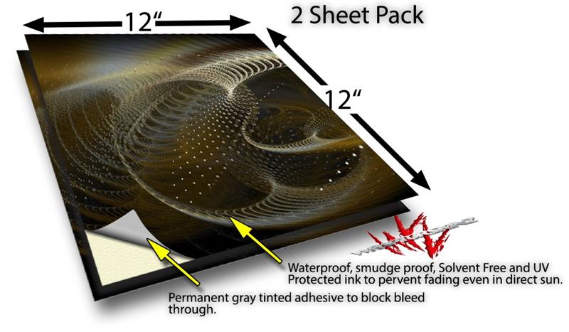 WraptoSkinz™ skin vinyl craft sheets are printed using superb photo quality designs and vibrant colors printed with special UV Protected fade resistant inks that last even in direct sun for years.  Unlike other brands our inks are NOT solvent based. WraptorSkinz are a manufactured from professional grade 3mill vinyl. These sheets are waterproof, the designs will not run or smear even if submerged in water.