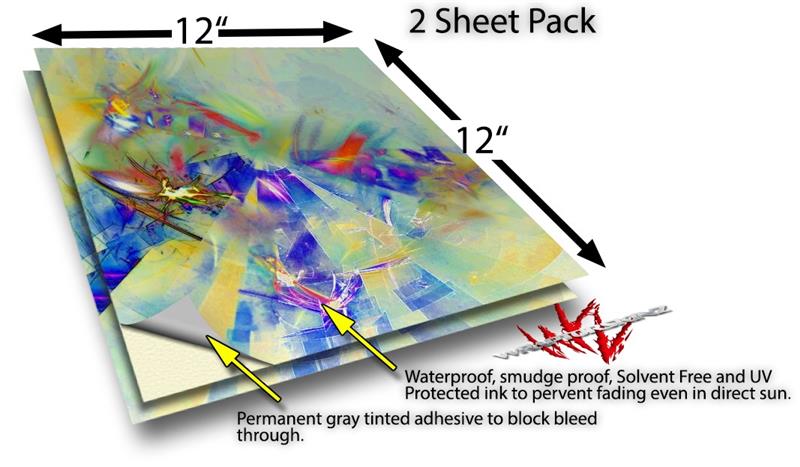 WraptoSkinz™ skin vinyl craft sheets are printed using superb photo quality designs and vibrant colors printed with special UV Protected fade resistant inks that last even in direct sun for years.  Unlike other brands our inks are NOT solvent based. WraptorSkinz are a manufactured from professional grade 3mill vinyl. These sheets are waterproof, the designs will not run or smear even if submerged in water.