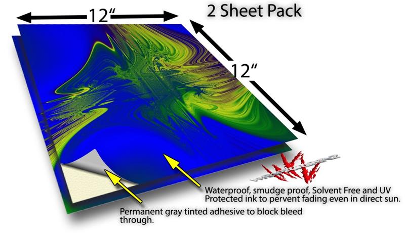 WraptoSkinz™ skin vinyl craft sheets are printed using superb photo quality designs and vibrant colors printed with special UV Protected fade resistant inks that last even in direct sun for years.  Unlike other brands our inks are NOT solvent based. WraptorSkinz are a manufactured from professional grade 3mill vinyl. These sheets are waterproof, the designs will not run or smear even if submerged in water.