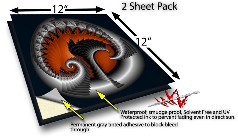 WraptoSkinz™ skin vinyl craft sheets are printed using superb photo quality designs and vibrant colors printed with special UV Protected fade resistant inks that last even in direct sun for years.  Unlike other brands our inks are NOT solvent based. WraptorSkinz are a manufactured from professional grade 3mill vinyl. These sheets are waterproof, the designs will not run or smear even if submerged in water.