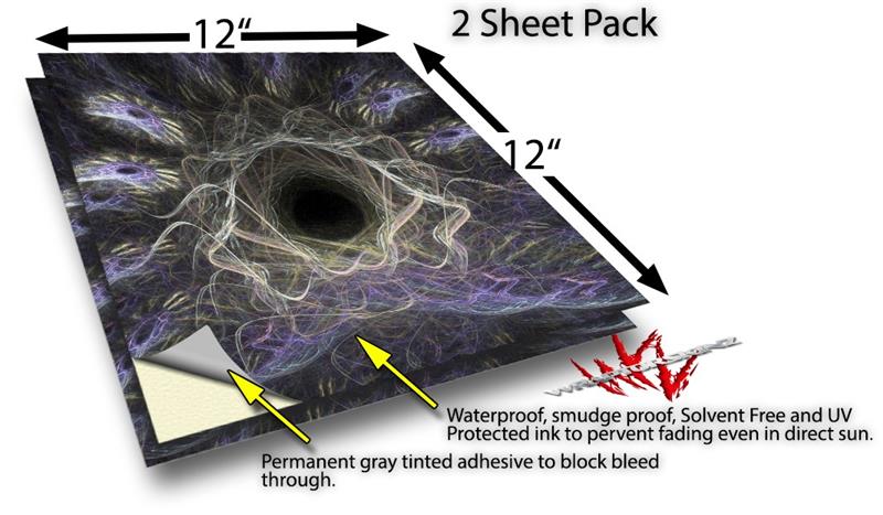 WraptoSkinz™ skin vinyl craft sheets are printed using superb photo quality designs and vibrant colors printed with special UV Protected fade resistant inks that last even in direct sun for years.  Unlike other brands our inks are NOT solvent based. WraptorSkinz are a manufactured from professional grade 3mill vinyl. These sheets are waterproof, the designs will not run or smear even if submerged in water.