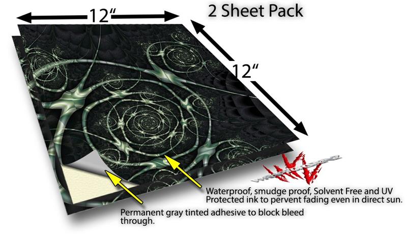 WraptoSkinz™ skin vinyl craft sheets are printed using superb photo quality designs and vibrant colors printed with special UV Protected fade resistant inks that last even in direct sun for years. Unlike other brands our inks are NOT solvent based. WraptorSkinz are a manufactured from professional grade 3mill vinyl. These sheets are waterproof, the designs will not run or smear even if submerged in water.