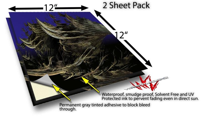 WraptoSkinz™ skin vinyl craft sheets are printed using superb photo quality designs and vibrant colors printed with special UV Protected fade resistant inks that last even in direct sun for years. Unlike other brands our inks are NOT solvent based. WraptorSkinz are a manufactured from professional grade 3mill vinyl. These sheets are waterproof, the designs will not run or smear even if submerged in water.