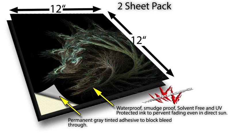 WraptoSkinz™ skin vinyl craft sheets are printed using superb photo quality designs and vibrant colors printed with special UV Protected fade resistant inks that last even in direct sun for years.  Unlike other brands our inks are NOT solvent based. WraptorSkinz are a manufactured from professional grade 3mill vinyl. These sheets are waterproof, the designs will not run or smear even if submerged in water.