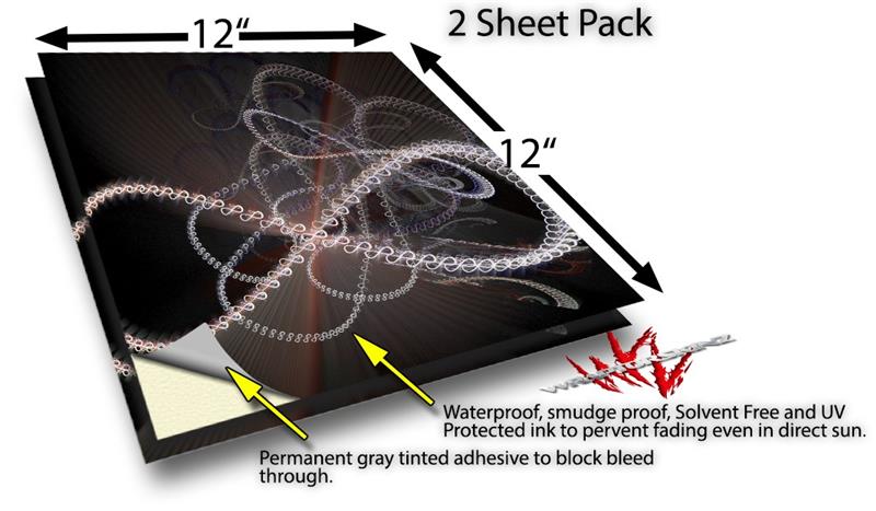 WraptoSkinz™ skin vinyl craft sheets are printed using superb photo quality designs and vibrant colors printed with special UV Protected fade resistant inks that last even in direct sun for years.  Unlike other brands our inks are NOT solvent based. WraptorSkinz are a manufactured from professional grade 3mill vinyl. These sheets are waterproof, the designs will not run or smear even if submerged in water.