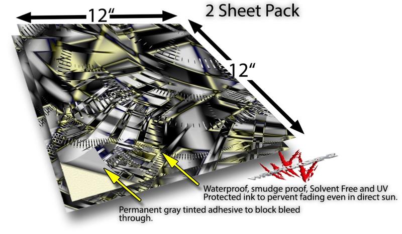 WraptoSkinz™ skin vinyl craft sheets are printed using superb photo quality designs and vibrant colors printed with special UV Protected fade resistant inks that last even in direct sun for years.  Unlike other brands our inks are NOT solvent based. WraptorSkinz are a manufactured from professional grade 3mill vinyl. These sheets are waterproof, the designs will not run or smear even if submerged in water.