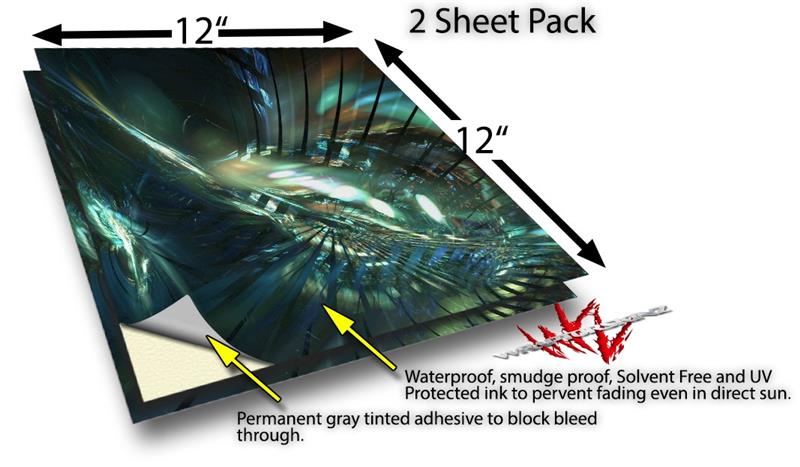 WraptoSkinz™ skin vinyl craft sheets are printed using superb photo quality designs and vibrant colors printed with special UV Protected fade resistant inks that last even in direct sun for years.  Unlike other brands our inks are NOT solvent based. WraptorSkinz are a manufactured from professional grade 3mill vinyl. These sheets are waterproof, the designs will not run or smear even if submerged in water.