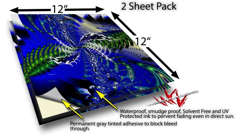 WraptoSkinz™ skin vinyl craft sheets are printed using superb photo quality designs and vibrant colors printed with special UV Protected fade resistant inks that last even in direct sun for years.  Unlike other brands our inks are NOT solvent based. WraptorSkinz are a manufactured from professional grade 3mill vinyl. These sheets are waterproof, the designs will not run or smear even if submerged in water.