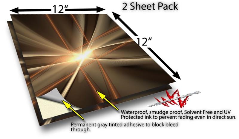 WraptoSkinz™ skin vinyl craft sheets are printed using superb photo quality designs and vibrant colors printed with special UV Protected fade resistant inks that last even in direct sun for years. Unlike other brands our inks are NOT solvent based. WraptorSkinz are a manufactured from professional grade 3mill vinyl. These sheets are waterproof, the designs will not run or smear even if submerged in water.