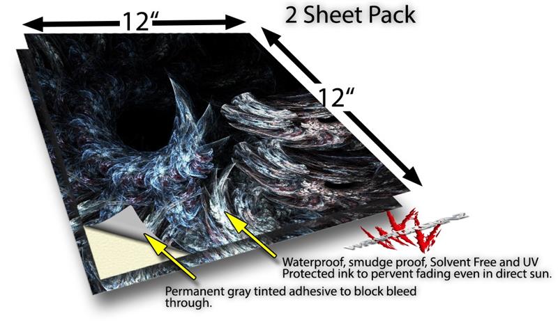 WraptoSkinz™ skin vinyl craft sheets are printed using superb photo quality designs and vibrant colors printed with special UV Protected fade resistant inks that last even in direct sun for years. Unlike other brands our inks are NOT solvent based. WraptorSkinz are a manufactured from professional grade 3mill vinyl. These sheets are waterproof, the designs will not run or smear even if submerged in water.