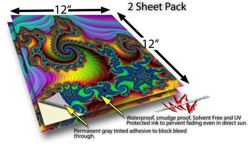 WraptoSkinz™ skin vinyl craft sheets are printed using superb photo quality designs and vibrant colors printed with special UV Protected fade resistant inks that last even in direct sun for years. Unlike other brands our inks are NOT solvent based. WraptorSkinz are a manufactured from professional grade 3mill vinyl. These sheets are waterproof, the designs will not run or smear even if submerged in water.