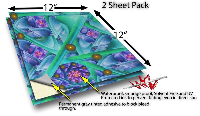 WraptoSkinz™ skin vinyl craft sheets are printed using superb photo quality designs and vibrant colors printed with special UV Protected fade resistant inks that last even in direct sun for years. Unlike other brands our inks are NOT solvent based. WraptorSkinz are a manufactured from professional grade 3mill vinyl. These sheets are waterproof, the designs will not run or smear even if submerged in water.