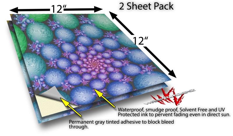 WraptoSkinz™ skin vinyl craft sheets are printed using superb photo quality designs and vibrant colors printed with special UV Protected fade resistant inks that last even in direct sun for years.  Unlike other brands our inks are NOT solvent based. WraptorSkinz are a manufactured from professional grade 3mill vinyl. These sheets are waterproof, the designs will not run or smear even if submerged in water.