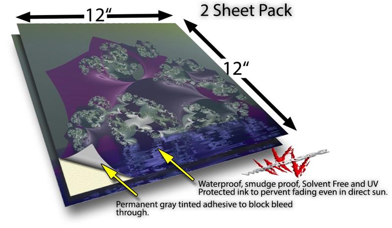 WraptoSkinz™ skin vinyl craft sheets are printed using superb photo quality designs and vibrant colors printed with special UV Protected fade resistant inks that last even in direct sun for years.  Unlike other brands our inks are NOT solvent based. WraptorSkinz are a manufactured from professional grade 3mill vinyl. These sheets are waterproof, the designs will not run or smear even if submerged in water.