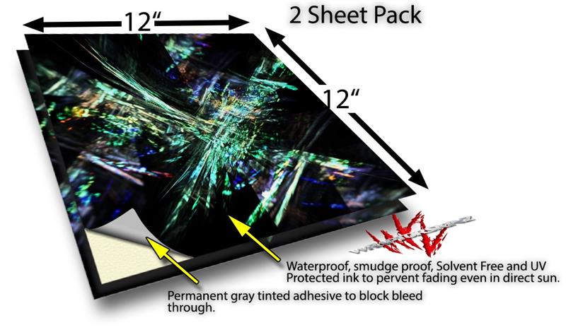 WraptoSkinz™ skin vinyl craft sheets are printed using superb photo quality designs and vibrant colors printed with special UV Protected fade resistant inks that last even in direct sun for years. Unlike other brands our inks are NOT solvent based. WraptorSkinz are a manufactured from professional grade 3mill vinyl. These sheets are waterproof, the designs will not run or smear even if submerged in water.