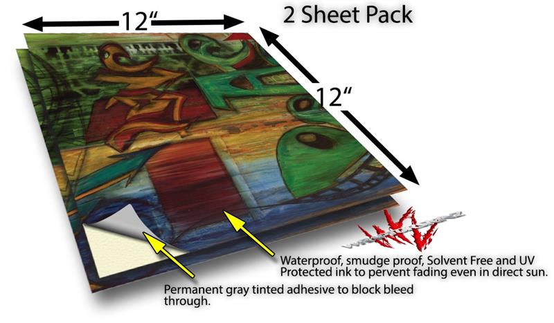 WraptoSkinz™ skin vinyl craft sheets are printed using superb photo quality designs and vibrant colors printed with special UV Protected fade resistant inks that last even in direct sun for years. Unlike other brands our inks are NOT solvent based. WraptorSkinz are a manufactured from professional grade 3mill vinyl. These sheets are waterproof, the designs will not run or smear even if submerged in water.