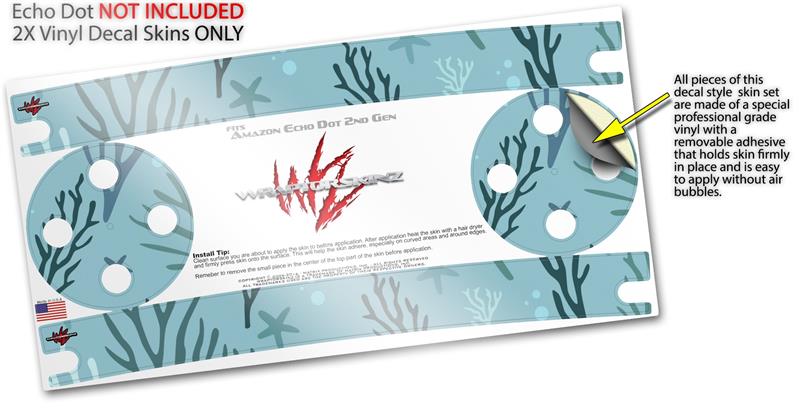 Skin Wrap Decal Set 2 Pack for Amazon Echo Dot 2 - Sea Blue (2nd Generation ONLY - Echo NOT INCLUDED)