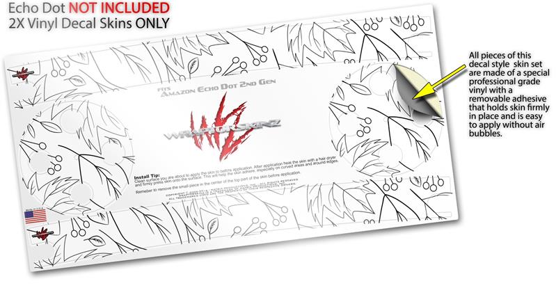 Skin Wrap Decal Set 2 Pack for Amazon Echo Dot 2 - Fall Black On White (2nd Generation ONLY - Echo NOT INCLUDED)
