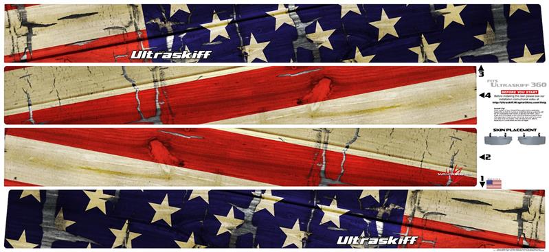 Painted Faded and Cracked USA American Flag - Vinyl Skin Partial Wrap Graphic fits Top Half of Ultraskiff 360 (ULTRASKIFF NOT INCLUDED)