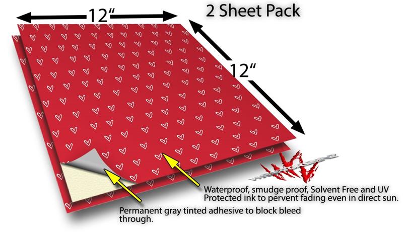 WraptorSkinz Vinyl Craft Cutter Designer 12x12 Sheets Hearts Red On White - 2 Pack