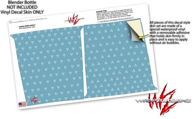Decal Style Skin Wrap works with Blender Bottle 22oz ProStak Hearts Blue On White (BOTTLE NOT INCLUDED)