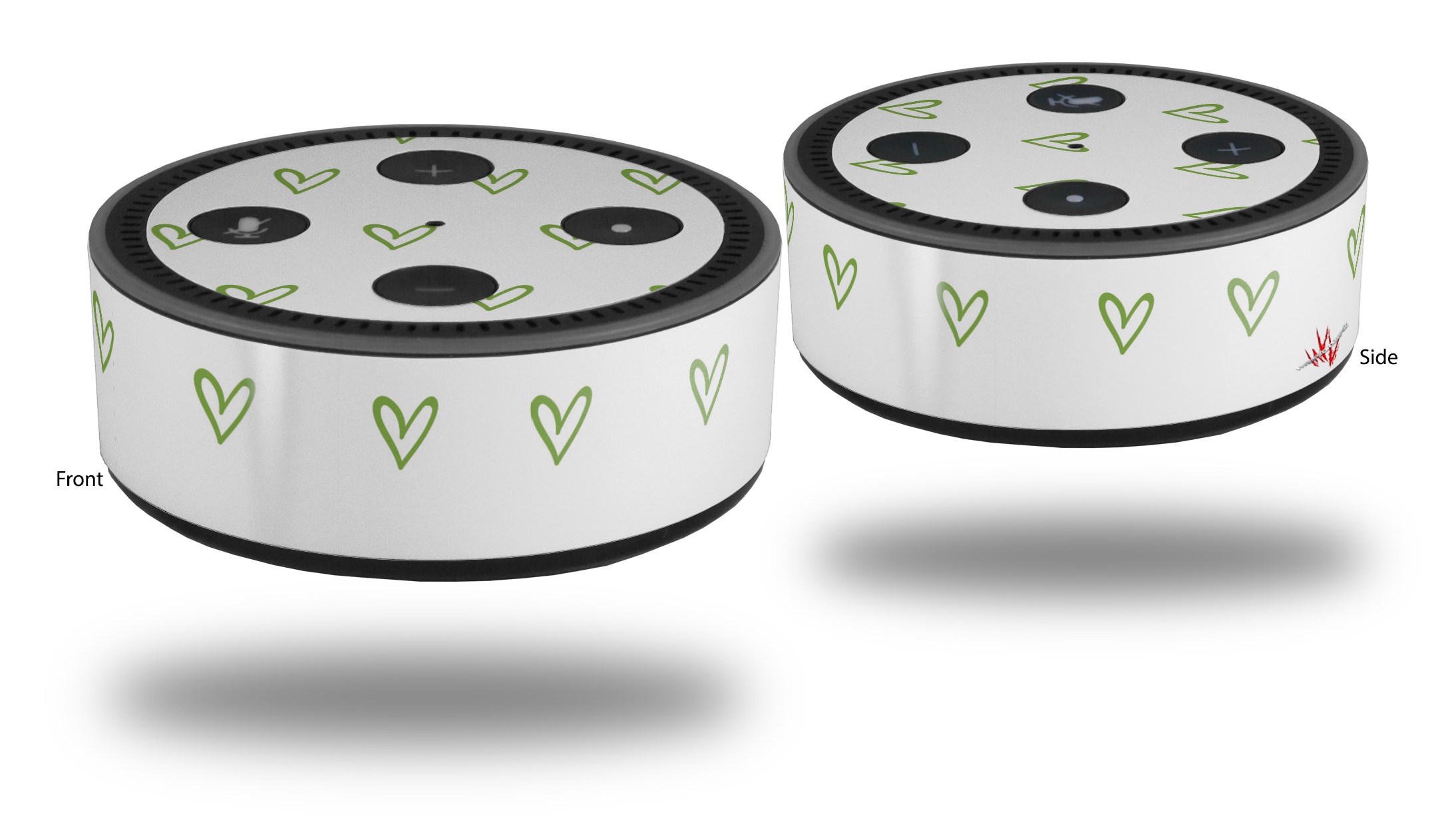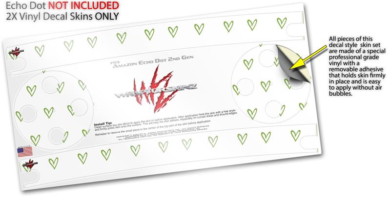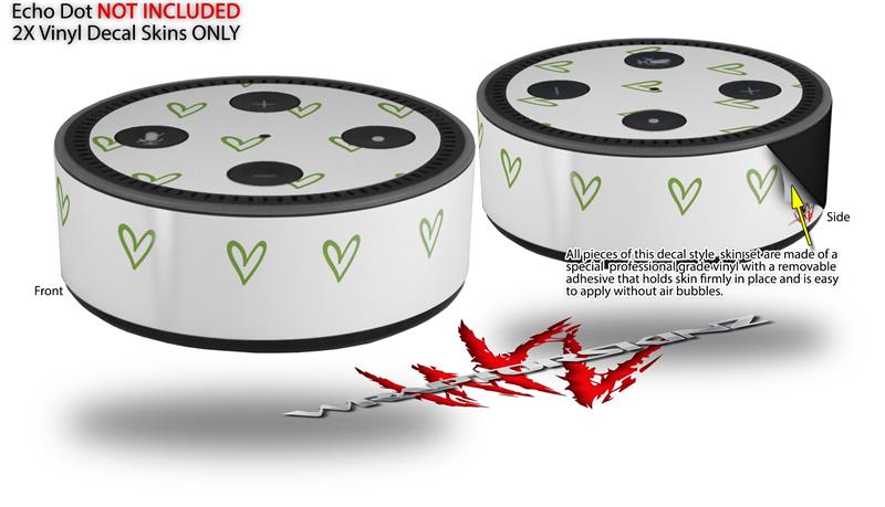 Skin Wrap Decal Set 2 Pack for Amazon Echo Dot 2 - Hearts Green (2nd Generation ONLY - Echo NOT INCLUDED)