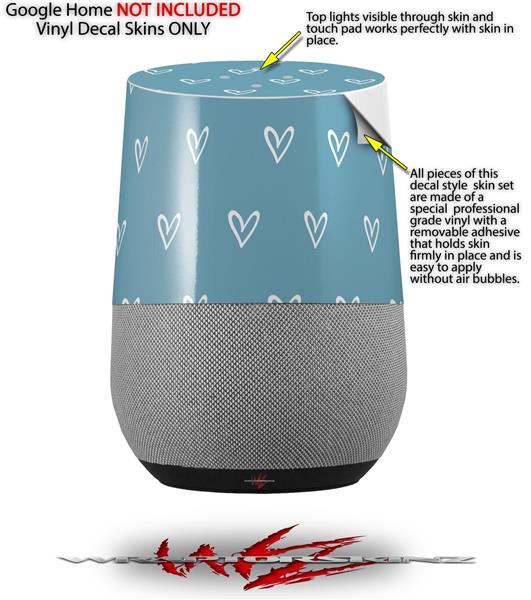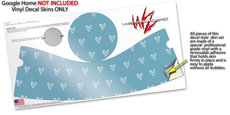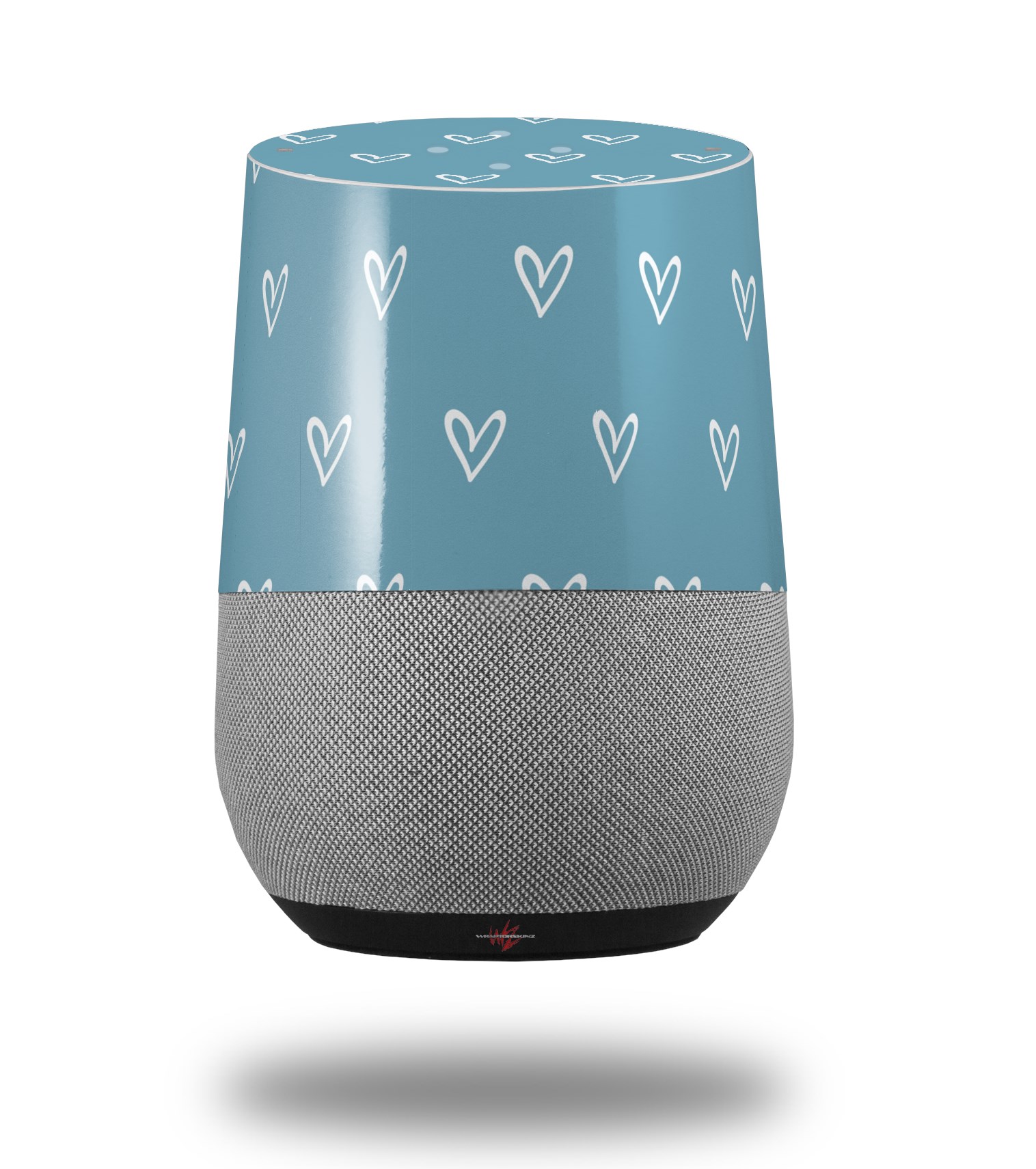 Decal Style Skin Wrap for Google Home Original - Hearts Blue On White (GOOGLE HOME NOT INCLUDED)