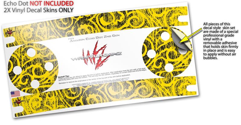 Skin Wrap Decal Set 2 Pack for Amazon Echo Dot 2 - Folder Doodles Yellow (2nd Generation ONLY - Echo NOT INCLUDED)