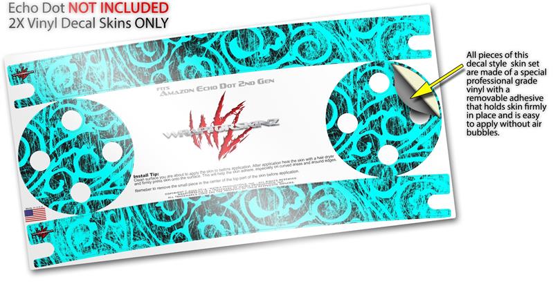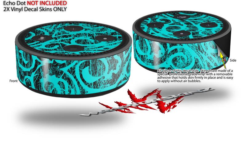 Skin Wrap Decal Set 2 Pack for Amazon Echo Dot 2 - Folder Doodles Neon Teal (2nd Generation ONLY - Echo NOT INCLUDED)