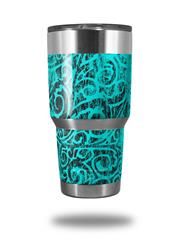 Skin Decal Wrap for Yeti Tumbler Rambler 30 oz Folder Doodles Neon Teal (TUMBLER NOT INCLUDED)