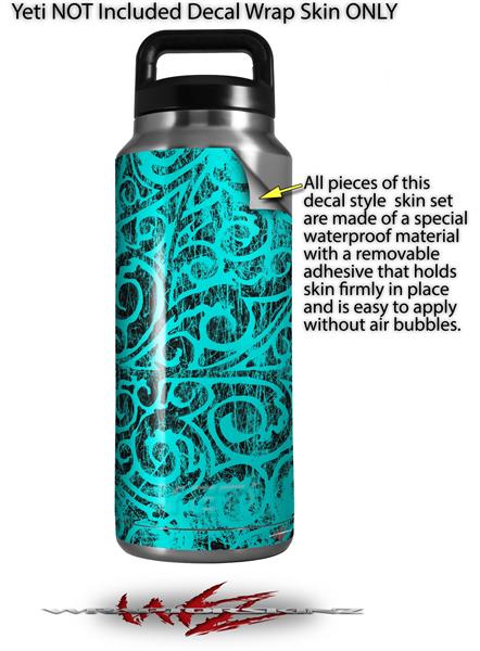 WraptorSkinz Skin Decal Wrap for Yeti Rambler Bottle 36oz Folder Doodles Neon Teal (YETI NOT INCLUDED)