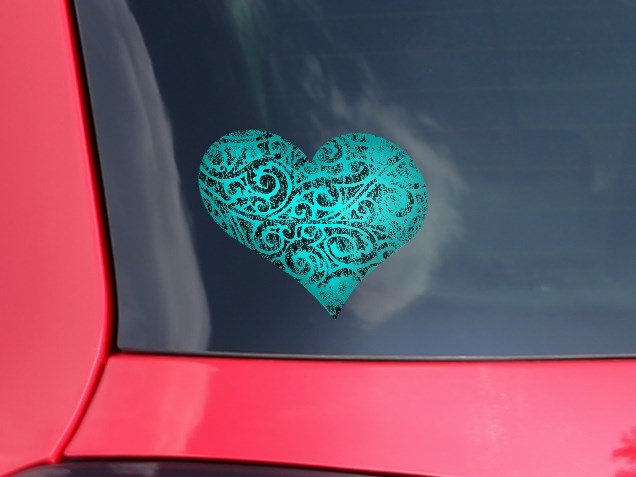 Folder Doodles Neon Teal - I Heart Love Car Window Decal 6.5 x 5.5 inches