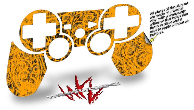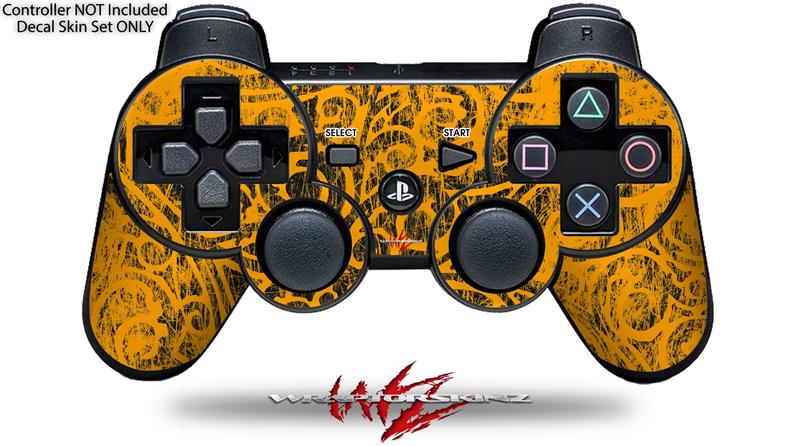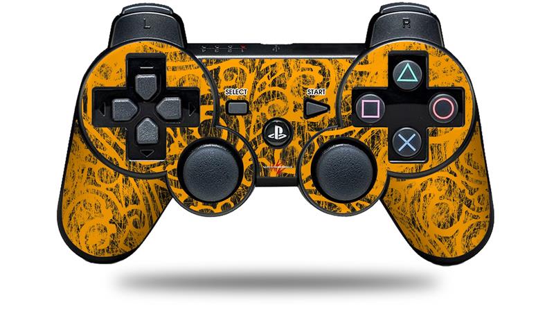 Sony PS3 Controller Decal Style Skin - Folder Doodles Orange (CONTROLLER NOT INCLUDED)