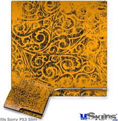Decal Skin compatible with Sony PS3 Slim Folder Doodles Orange