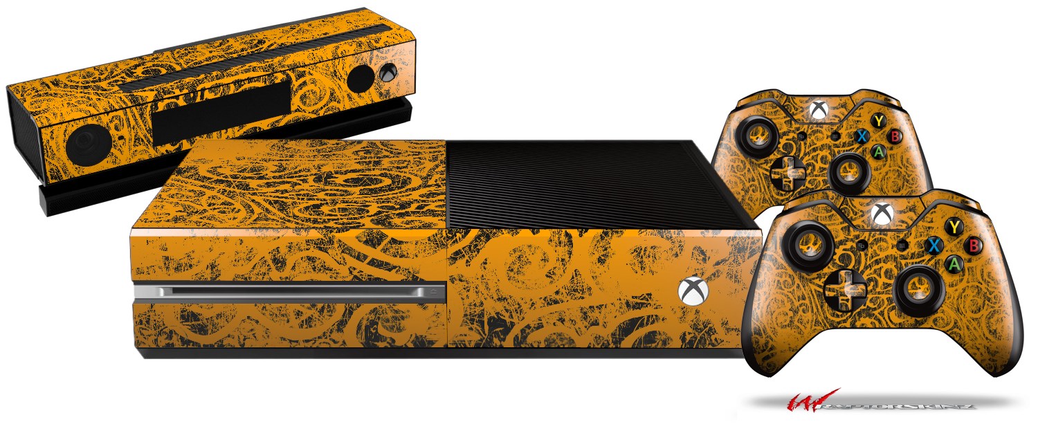Folder Doodles Orange - Holiday Bundle Decal Style Skin fits XBOX One Console Original, Kinect and 2 Controllers (XBOX SYSTEM NOT INCLUDED)